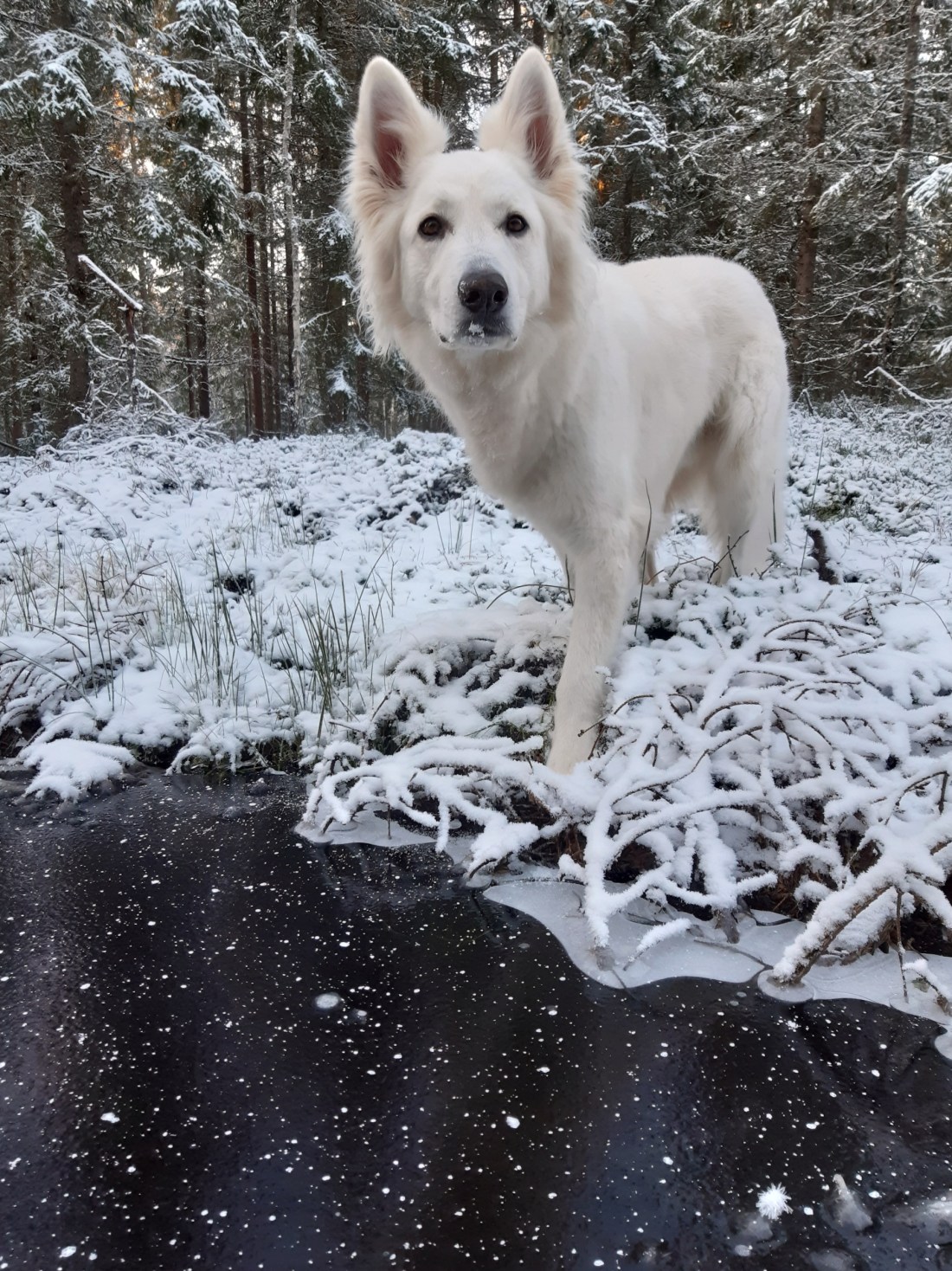 Vidars svans släpar inte längre längs med marken och han kör ner nosen i snön och drar så djupa andetag att han nyser. Upplivad av mina skratt rusar han iväg och gör nya fåniga saker och tycks vara lika road av att få mig att skratta som att upptäcka nya dofter.