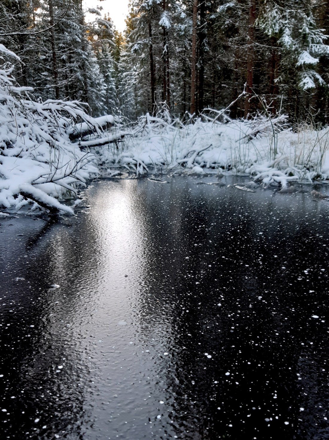 Jag drar djupa andetag, fyller lungorna så mycket det går med iskyla och krispighet. Fötterna bär mig vidare in i skogen, letar ännu fler nya vägar och hittar fäste där det förut varit halt och slipprigt.