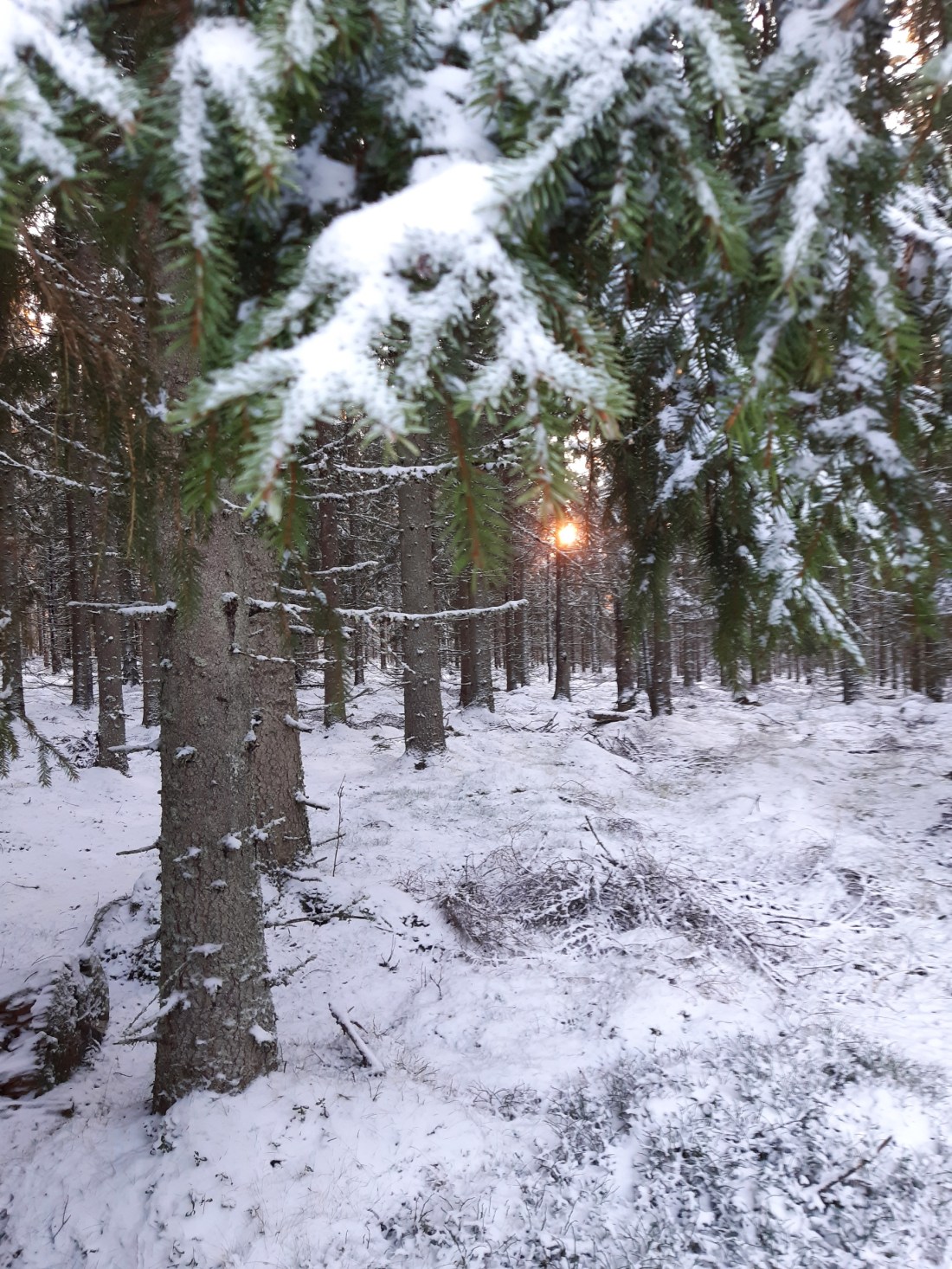 Jag trodde att det bara var jag som påverkats av den senaste månadens mörker, dimma och lågt krypande moln, men överallt publiceras jublande bilder och kommentarer om hur underbart skönt det är att ljuset äntligen är tillbaka. Jag håller fullständigt med. Det hade varit ljuvligt om det kunde vara så här resten av december. Några minusgrader, frostglittrande träd och lite snö på marken. Lite ny snö om några dagar så att det blir lättare att läsa av spåren igen. Nu har alla djuren gått huller om buller och i varandras spår så nu ser jag knappt längre vilka de senaste är. Men skönast är ändå känslan av genuin lycka. Lättnaden över att se solen svepa bort rimfrosten i de höga granarnas kronor, leka fram dimma över ängarna om kvällen och gnistra i kristallerna under morgonen när den sakta stiger upp över horisonten.