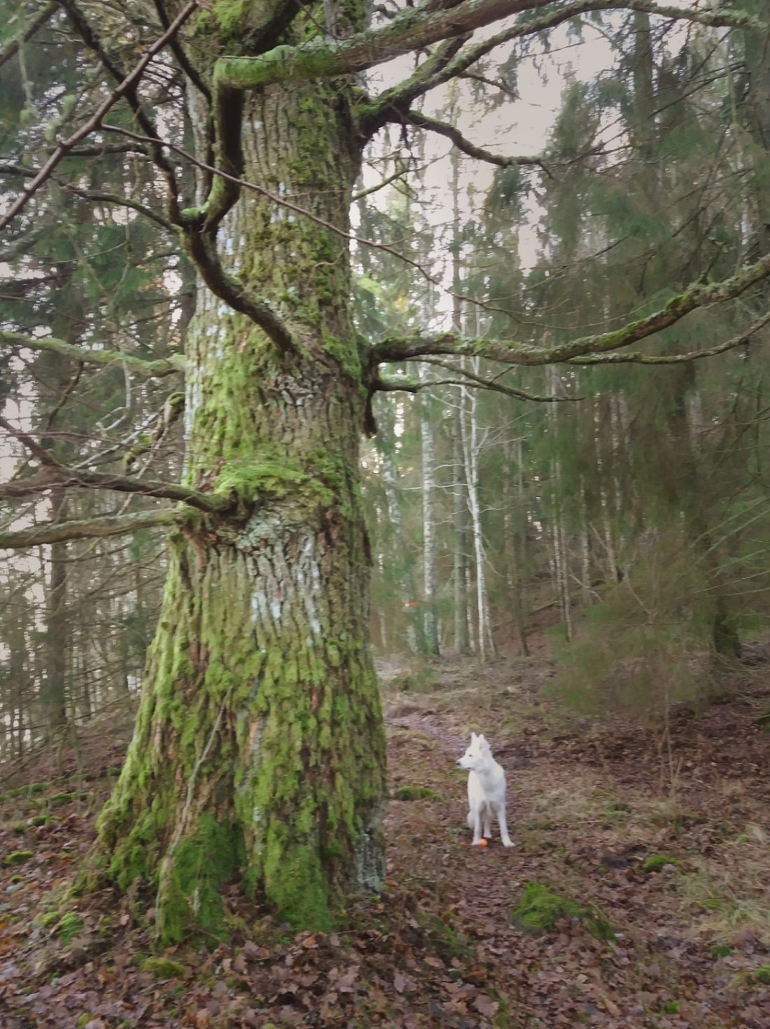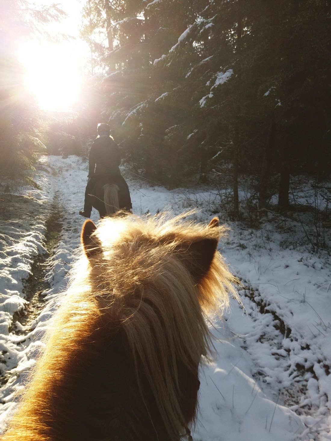 Vidar nosade glatt i spåren efter hästarna och jag kunde inte låta bli att undra om han förstod att jag var en av dem som suttit på ryggen på den ena. Speciellt på ett ställe där vi alla suttit av för att leda hästarna en bit. Hur mycket förstår en hund egentligen?