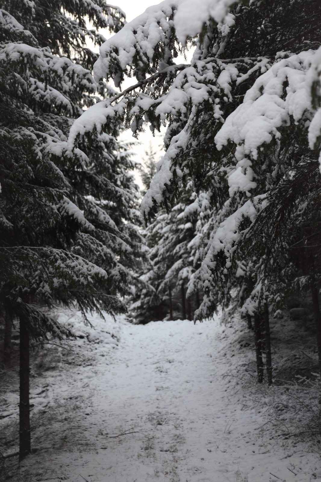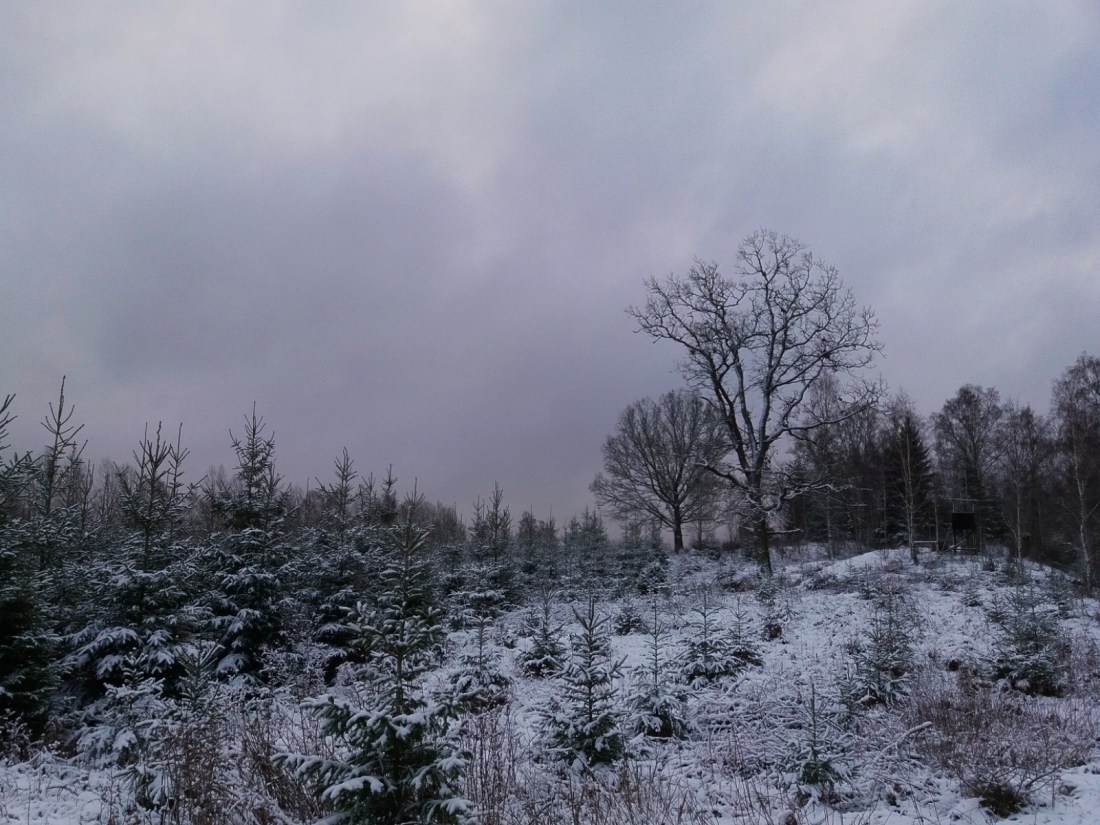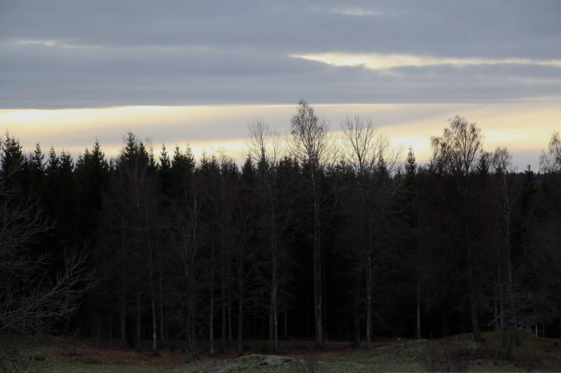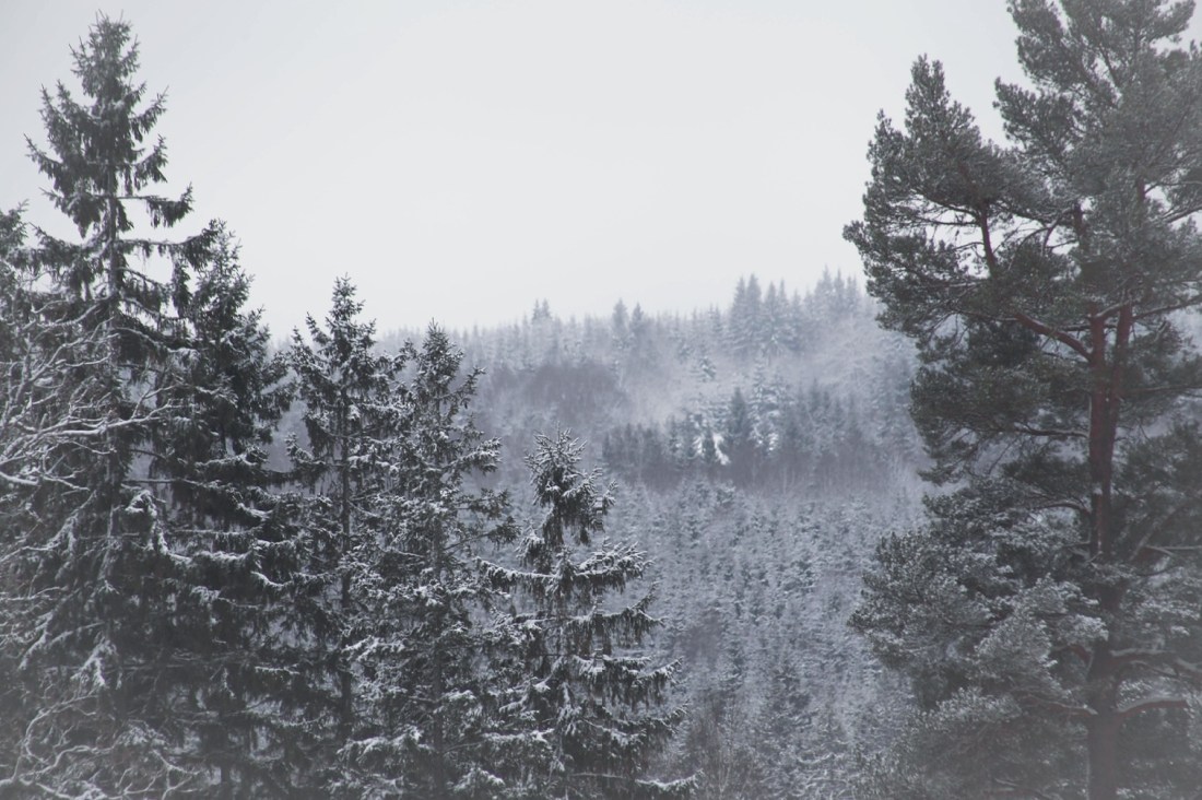 För någon dag sedan satt jag och tittade på när snön föll. Sakta, sakta kom flinga efter flinga singlandes försiktigt ned från skyn. Månen bröt nästan igenom skyarna med sitt ljus och mörkret var inte så tätt utan att det gick att gå obehindrat fastän solen gått ned för längesen. Där, bland stammar som klätts vita och med pudrade grenar fann jag rytmen i mina steg igen. Det är där jag ska vara, dit jag längtat när världen runt omkring blir för stor och svår. I det dämpade ljudet av stegen i snön.