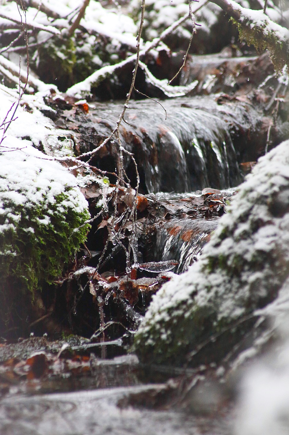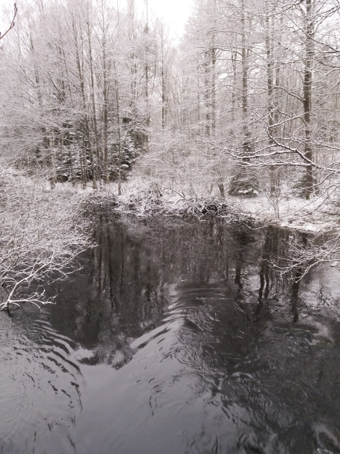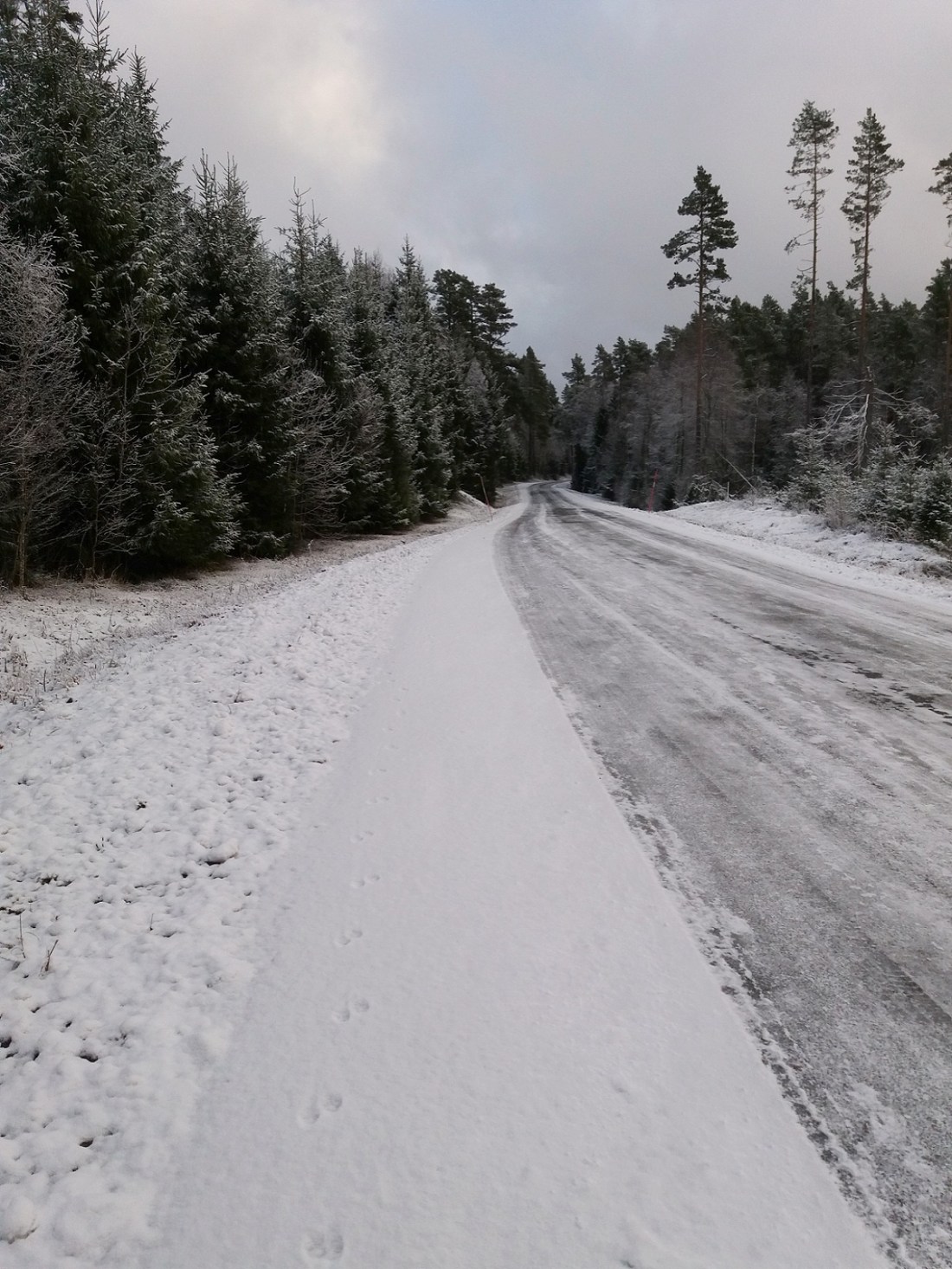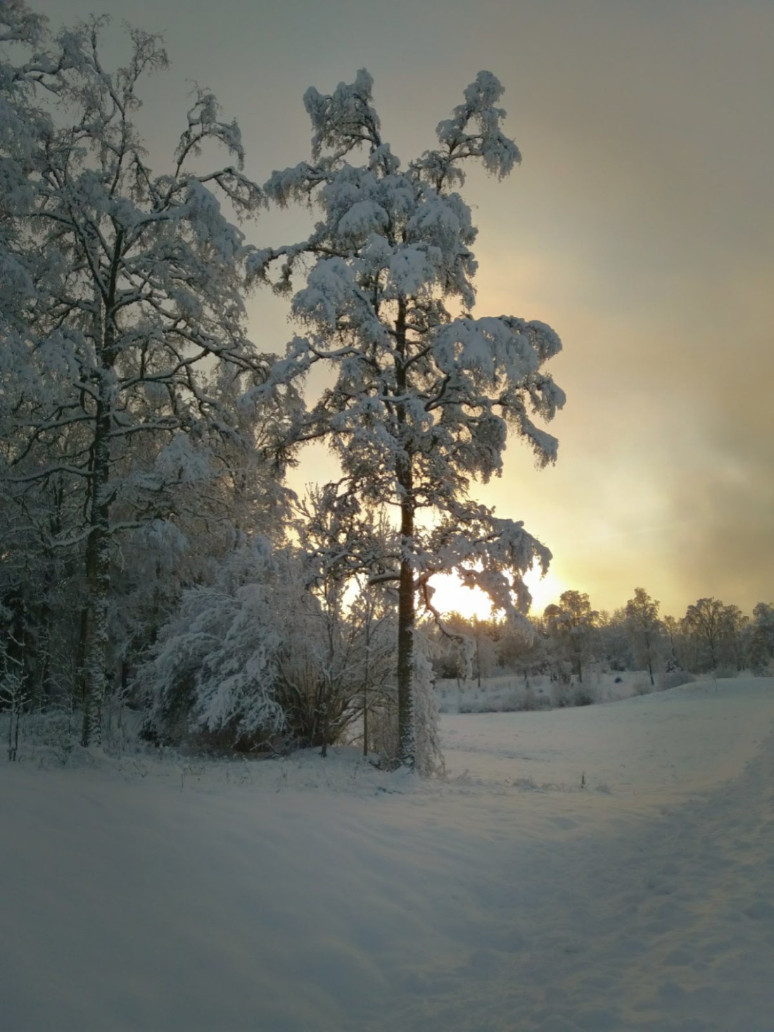 För någon dag sedan satt jag och tittade på när snön föll. Sakta, sakta kom flinga efter flinga singlandes försiktigt ned från skyn. Månen bröt nästan igenom skyarna med sitt ljus och mörkret var inte så tätt utan att det gick att gå obehindrat fastän solen gått ned för längesen. Där, bland stammar som klätts vita och med pudrade grenar fann jag rytmen i mina steg igen. Det är där jag ska vara, dit jag längtat när världen runt omkring blir för stor och svår. I det dämpade ljudet av stegen i snön.