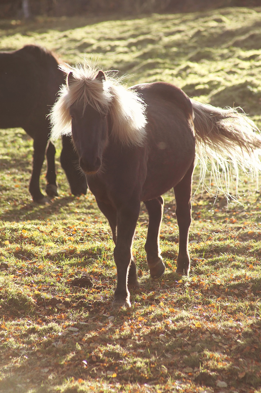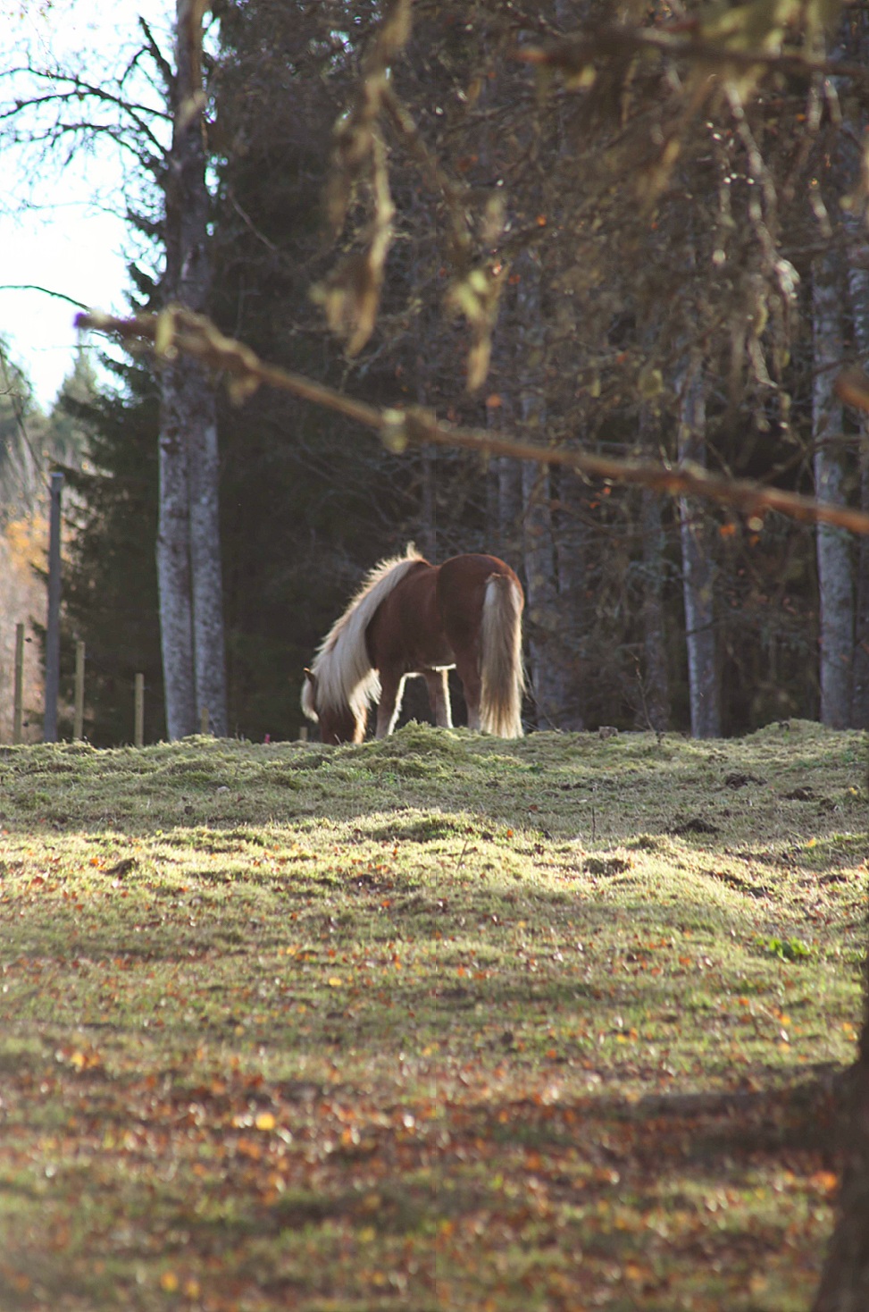 I hagen var det som att det var så disigt att det var dimma. Märkligt, men oerhört rogivande. Jag skulle kunnat stanna ännu längre bara för att vara där intill hästarna, se skuggorna vandra och höra ljuden från djuren. Men det tar ungefär två minuter innan min pälsboll kryper ur skinnet av tristess så det är bara att gå vidare. Mot solen, mot mitt hem.