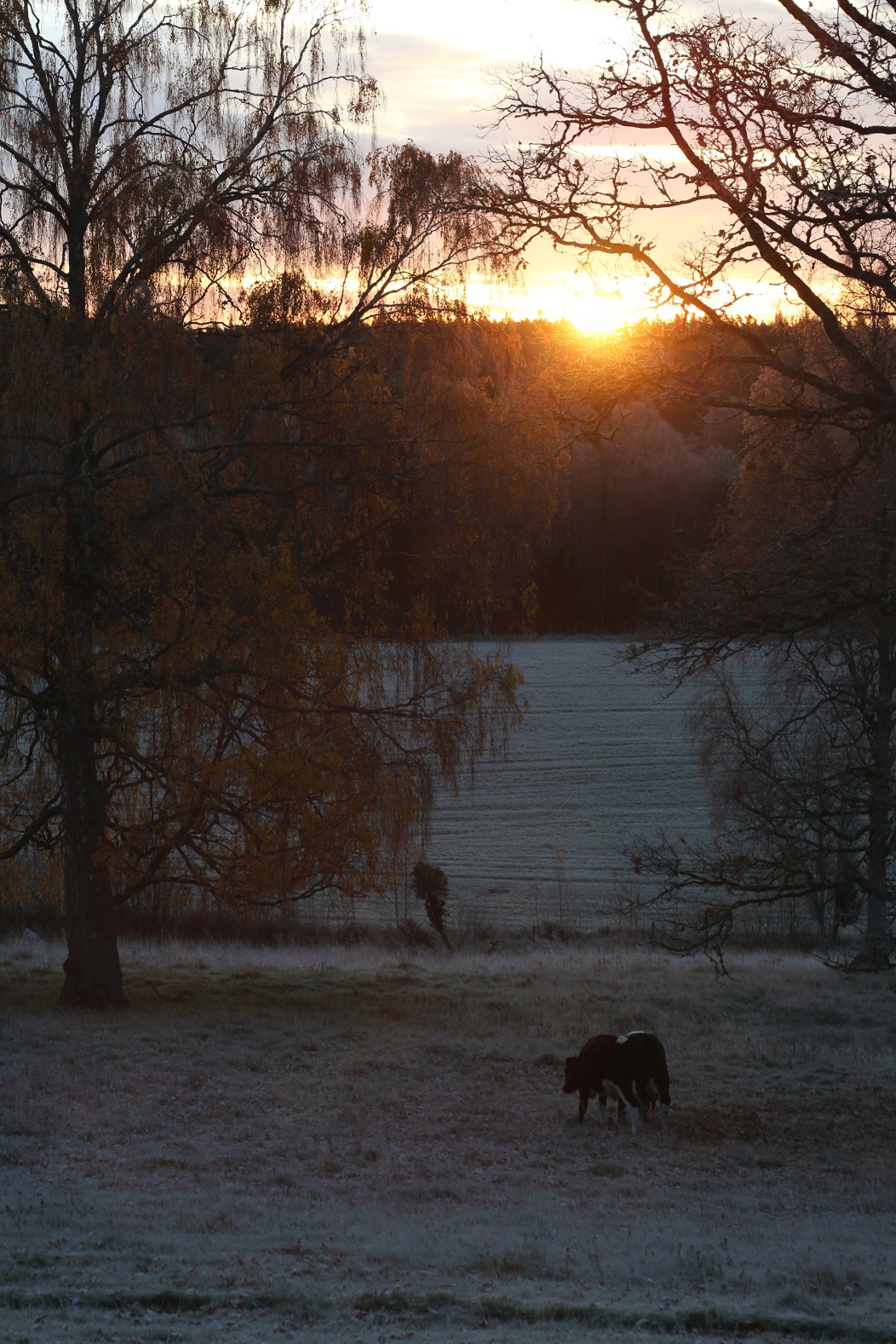 Hösten har nästan ruskat av sig de vackra löven nu och även om världen fortsätter att vara förtrollande vacker viskar vinterns första månad runt stammarna i skogen. Det var därför jag såg henne så tydligt idag, min fina lilla älgko som med sina sammetsmjuka ögon brukar stå helt stilla och se på oss när vi passerar henne. Idag var vi en bit längre ifrån, kanske femtio meter, men jag blev ändå varm av glädje. Det är henne jag oftast möter på och jag vill ju såklart att just hon ska gå fri från jakten. Inte så lite egoistiskt, jag vet, men jag tror att man får lov att vara det ibland.