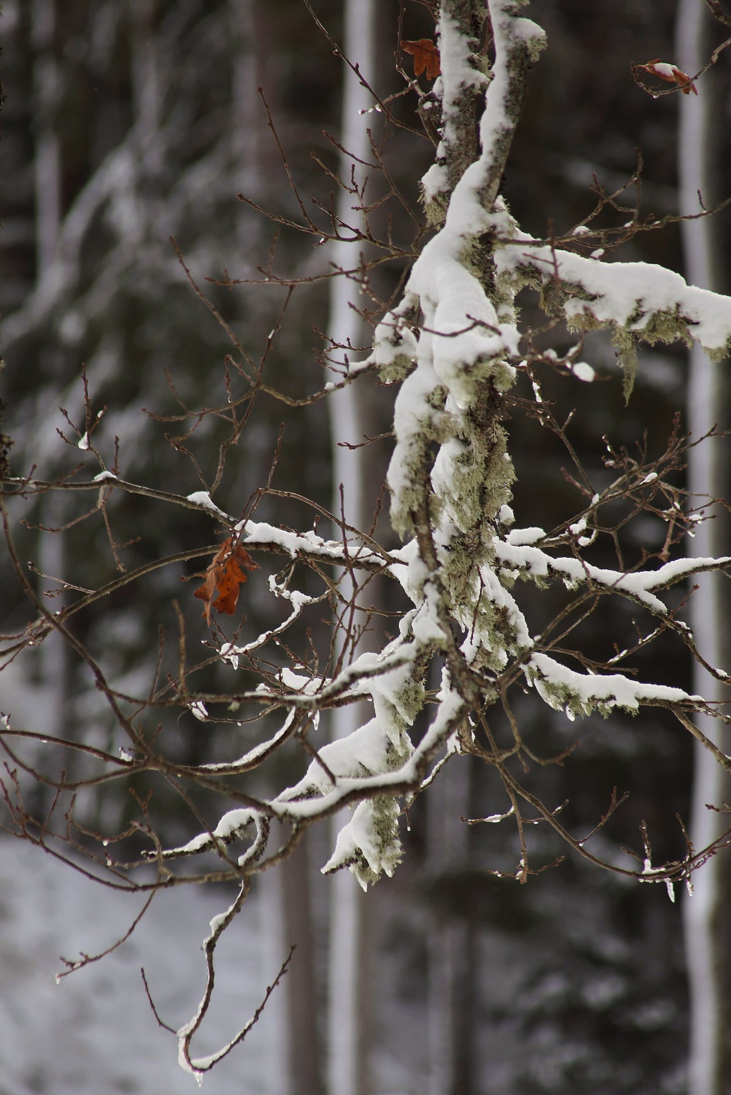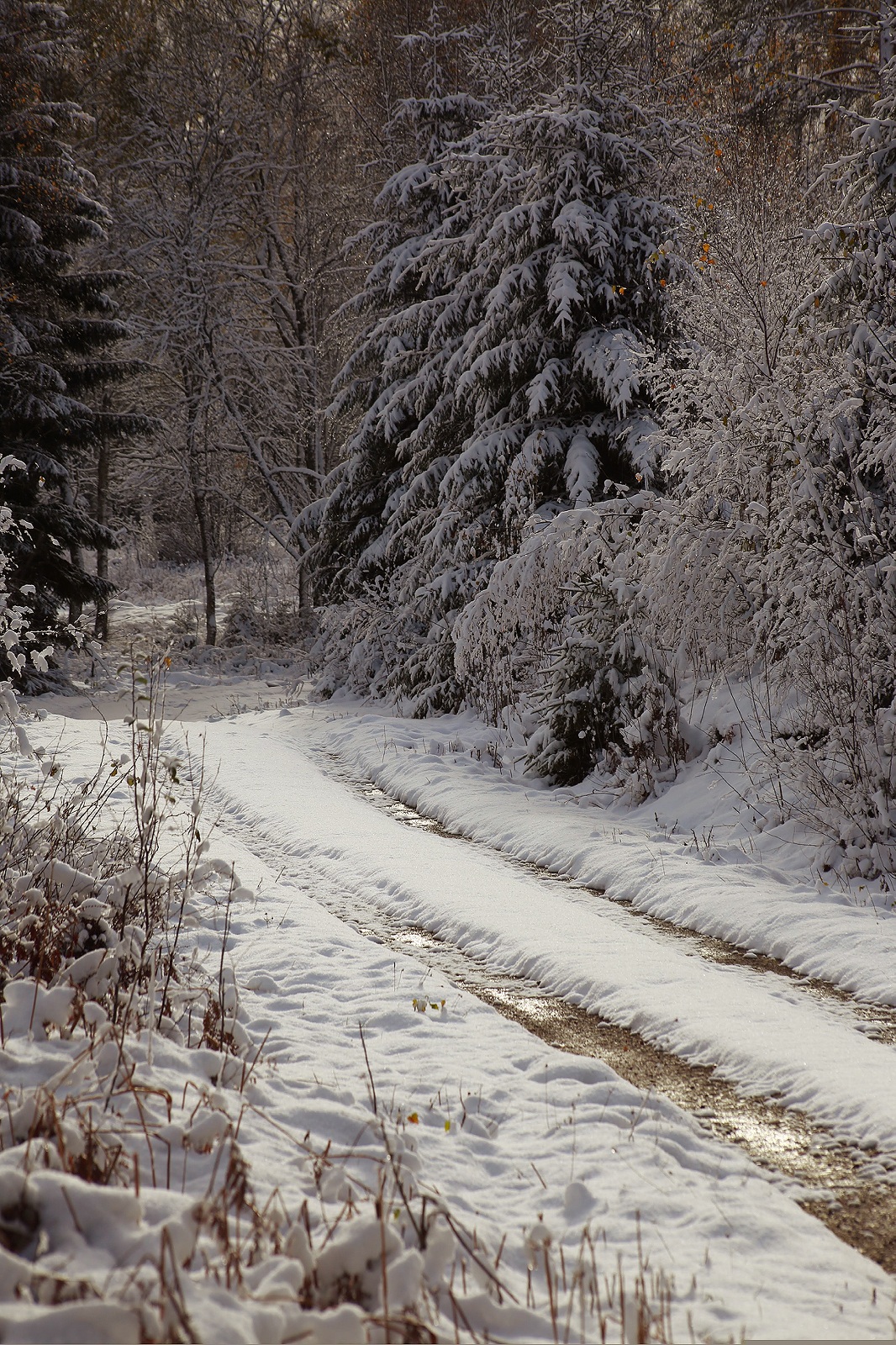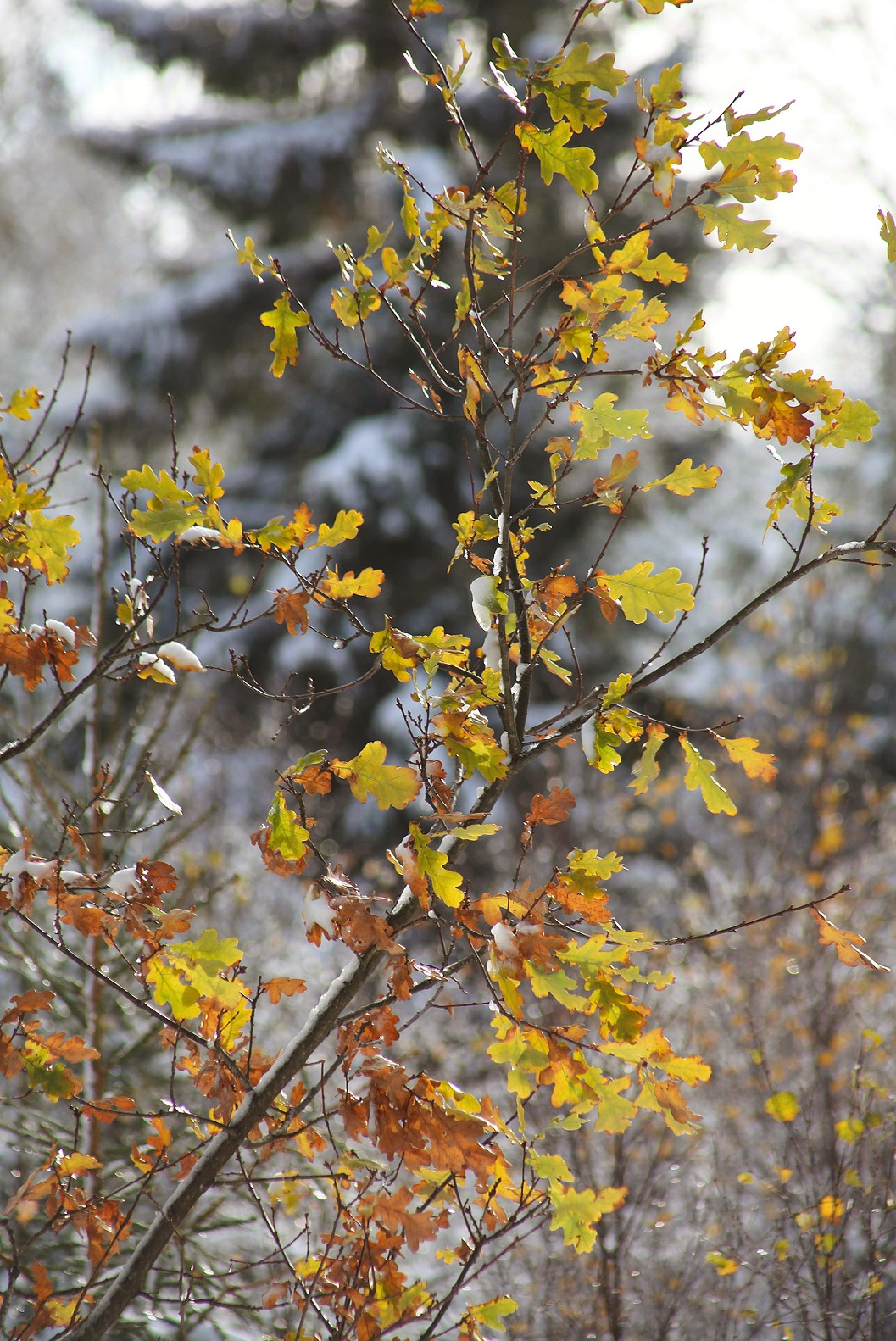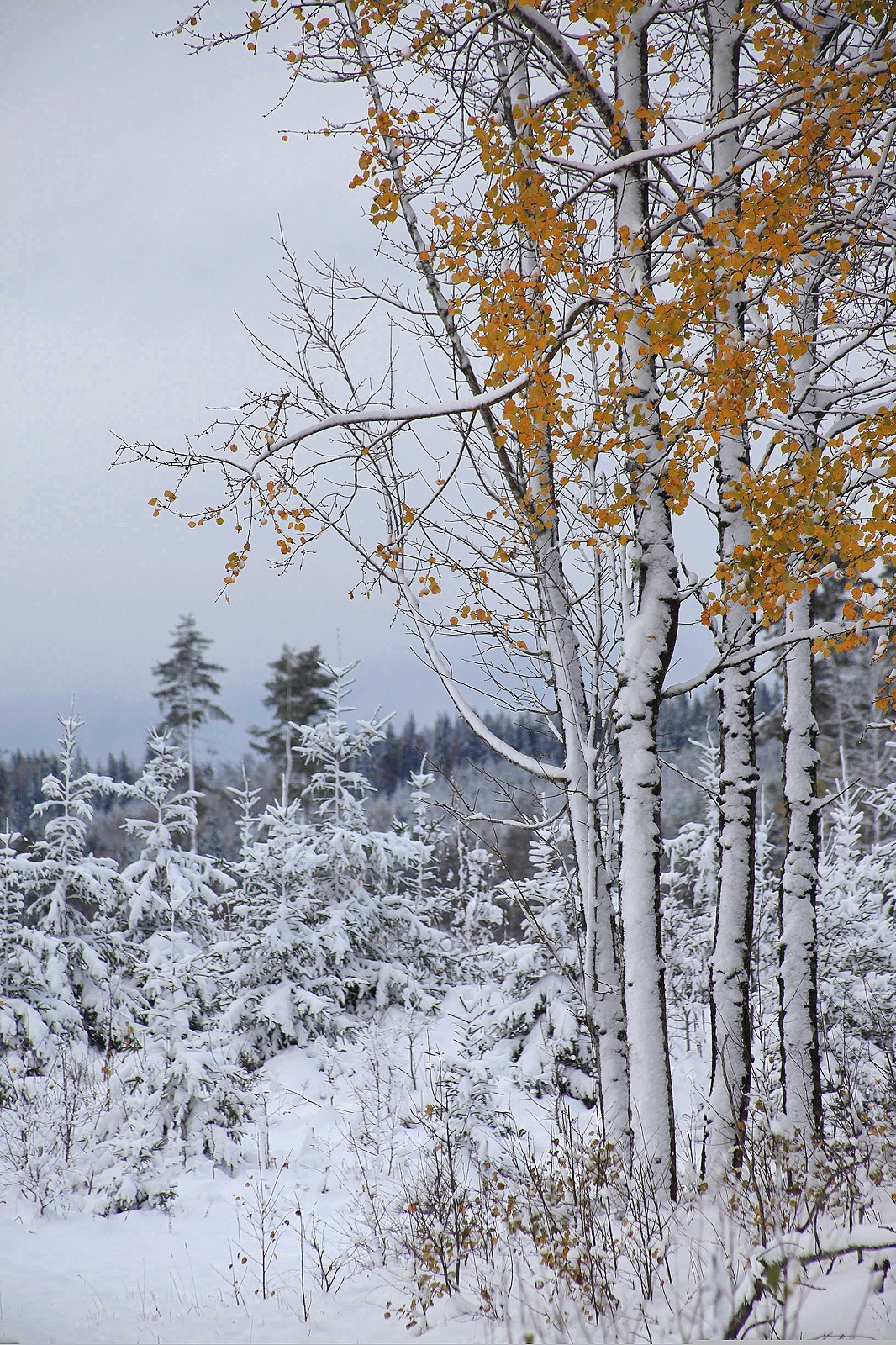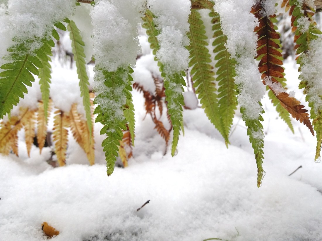 När det fortfarande var svampsäsong kände jag mig som att jag gick runt mitt inne i en saga, men det här var också en form av saga som jag inte vet om jag har upplevt förut. Inte så intensivt i alla fall. Det är väldigt speciellt med snö på träd som fortfarande bär löv.