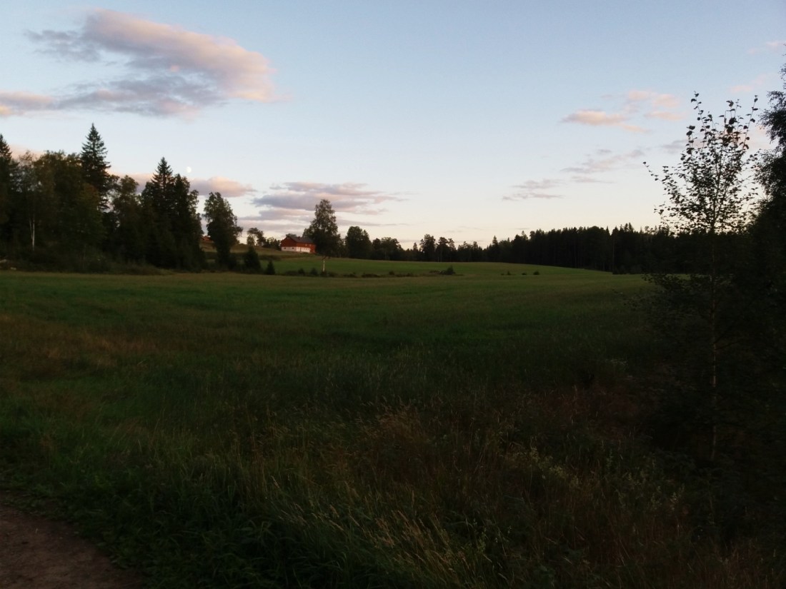 Skymningen kommer allt tidigare nu och jag hinner inte riktigt hem innan det mörknar längre. Det är härligt på något sätt, jag är ganska förtjust i skymningen och det som händer i luften just då. På en plats kom en speciell doft emot mig, doften av kväll. Förmodligen är det något som sker i gläntor av uppvärmt gräs och mull när kvällsluften kyler av marken och daggen faller. För mig är det ljuvligt och jag minns alla mina kvällar ute på läger när jag var liten. Erfarenheter jag inte skulle vilja vara utan även om jag alltid frös som en hund.