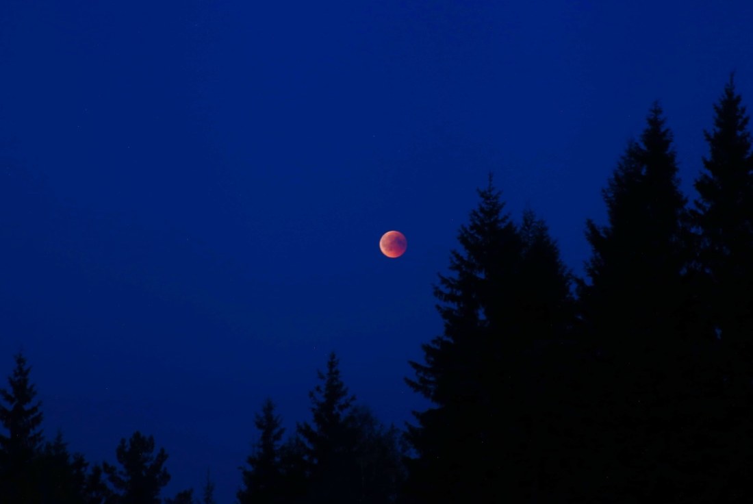 Kvällen gick över i en alldeles underbar natt och när månen väl klättrat upp över horisonten var den förstås nästan helt osynlig på grund av förmörkelsen, men sedan antog den en alltmer rödare färg innan den försiktigt började återgå till att bli en alldeles vanlig fullmåne igen.