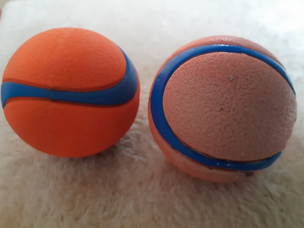 Sedan tittade jag på hunden som glatt ovetandes tuggade oavbrutet på sin nya boll, som redan fått ett liknande blött pysljud som den gamla, och så slappnade jag av. Det kommer att bli annorlunda, men det är kanske till och med bättre. Fast jag inte vet det än.