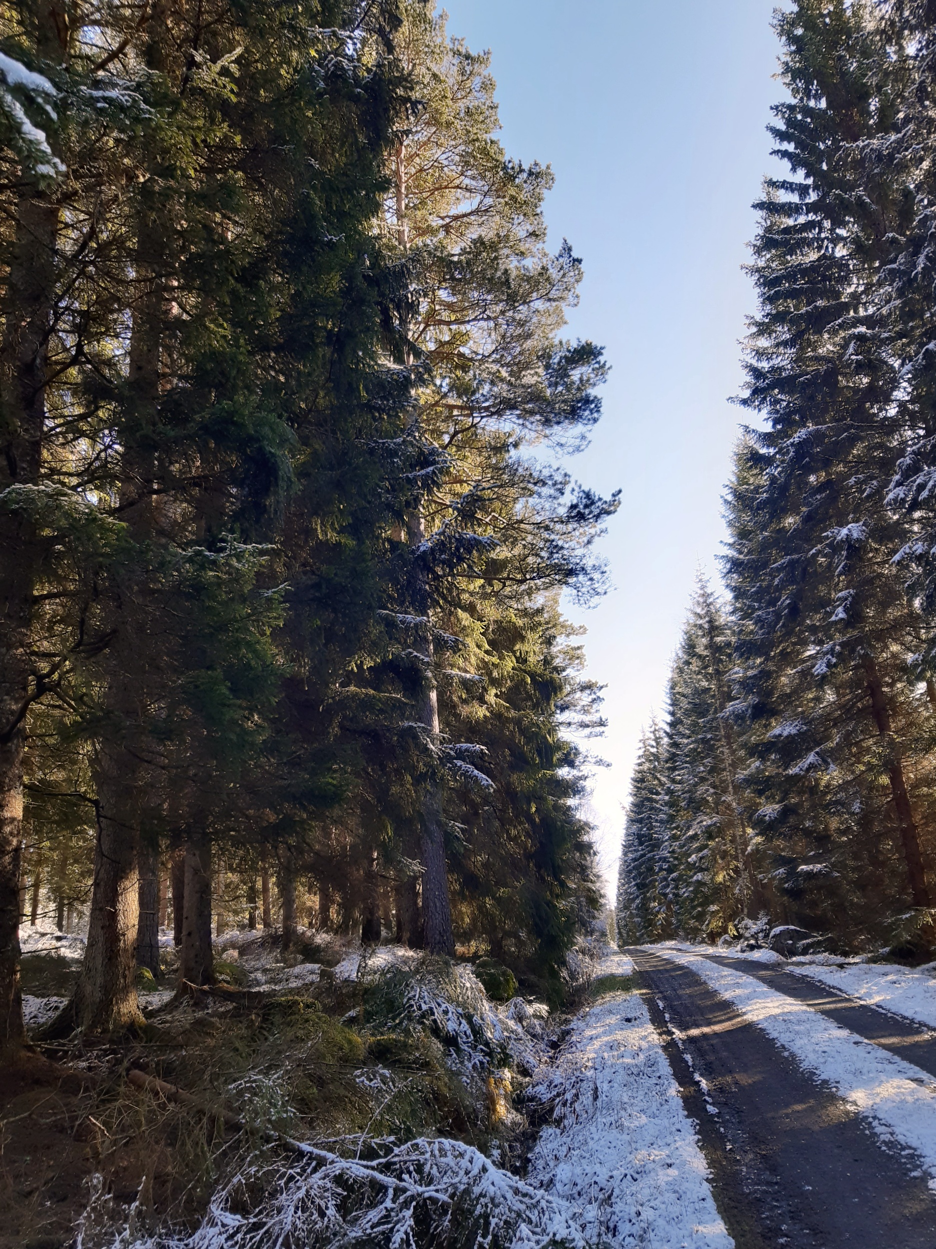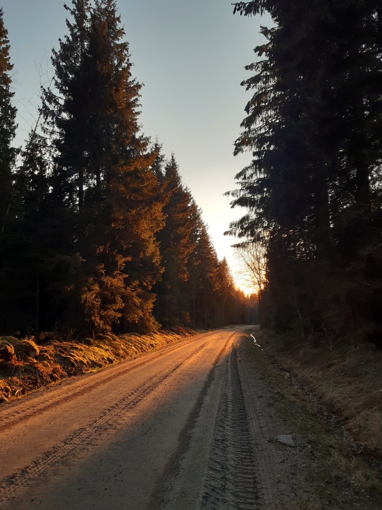Här är skogen yngre, inte lika majestätiskt tung och kompakt. Den kommer säkert att få vara kvar i flera år till. Med viskande vind mellan grenar, prasslande steg mellan stammarna och en glatt viftande svans i mil efter mil. Japp, det blir bra.