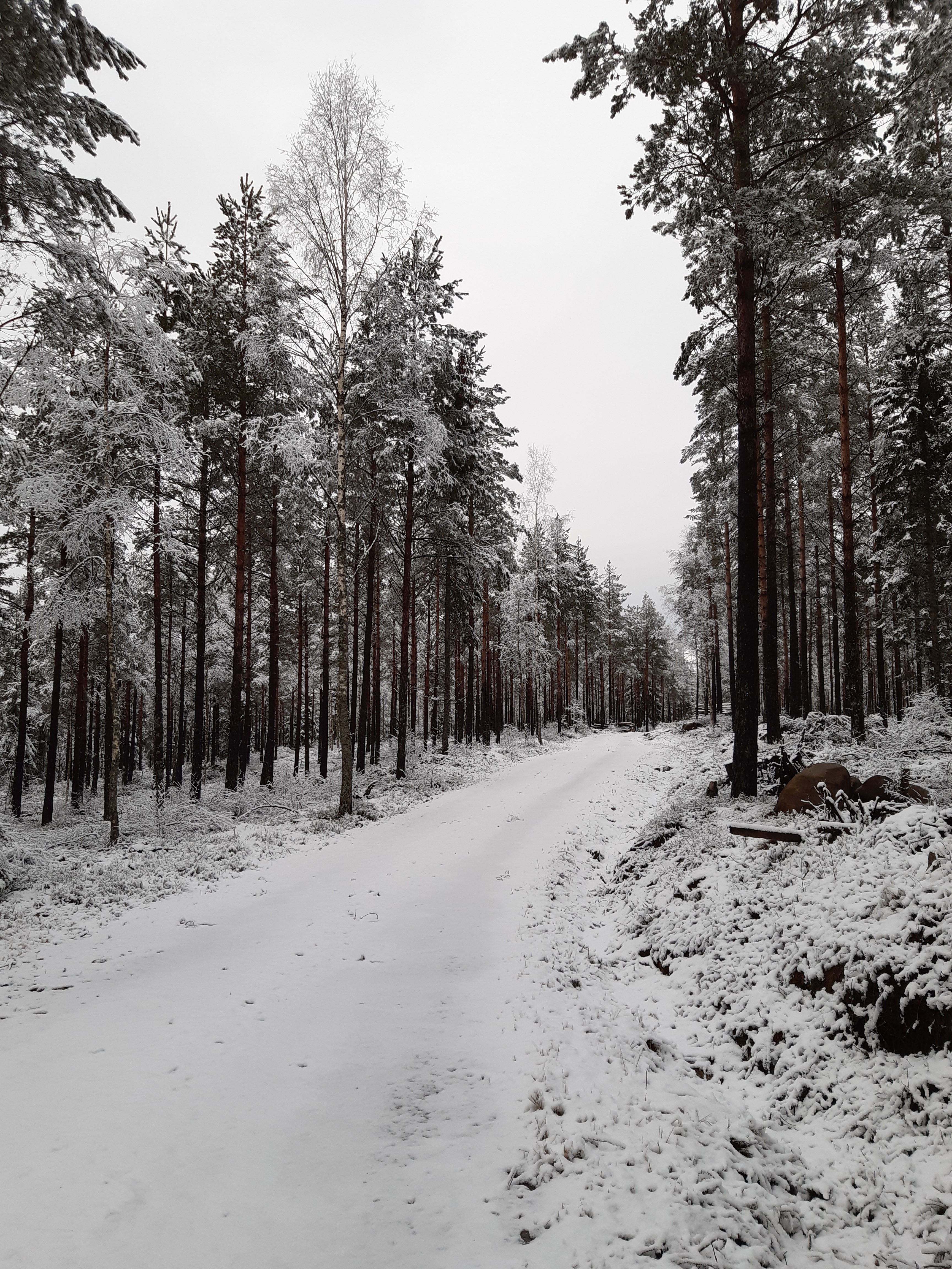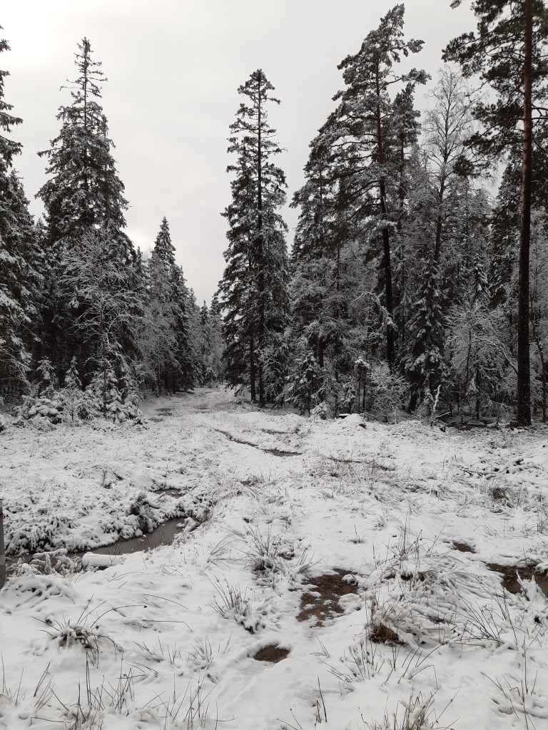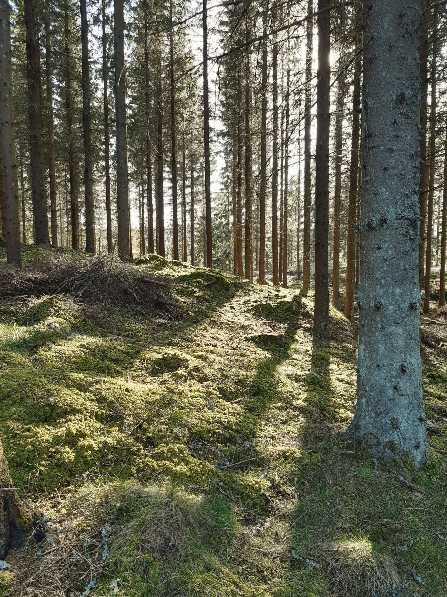 Vi jagar genom skogarna, Vidar och jag. På cykel, till fots och med springskor. Över knastertorra lavar, genom leriga sumpmarker och nyfällda skogsområden där tallar ensamt stretar mot skyn i en kamp om bästa platsen som de vann, enbart för att de var av fel virke. Stympade och skadade av de fallande granarna som en gång stod runt omkring dem är de nu ensamma kvar i stormarna.
