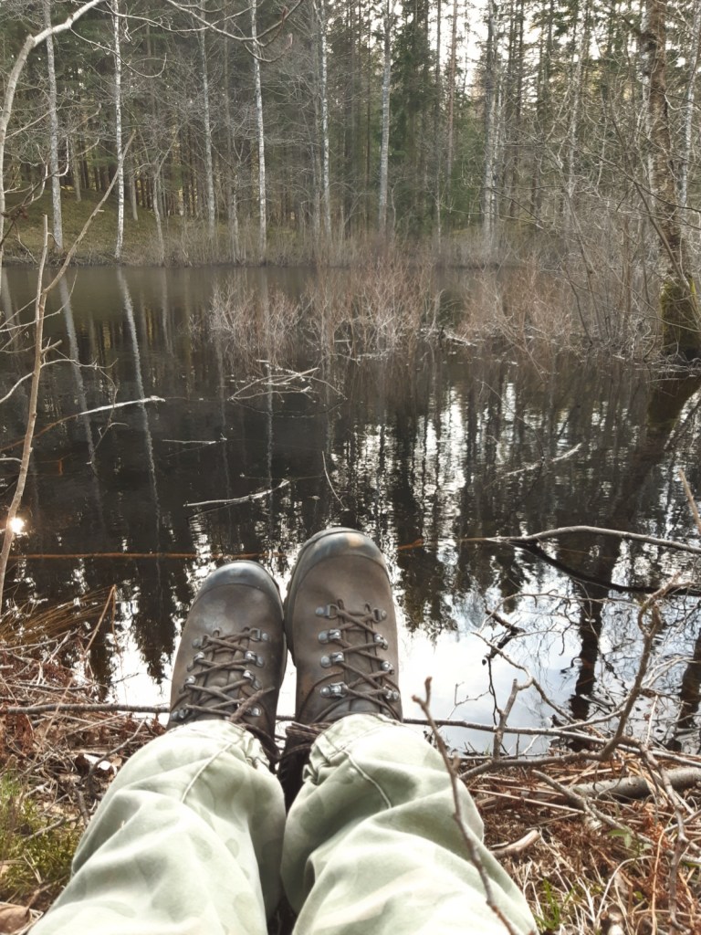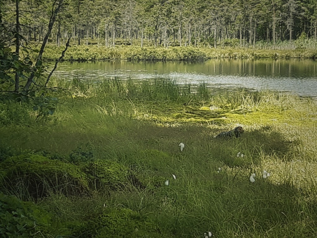 Doften av pors, surjordsväxter och en mörk, spegelblank yta på en tjärn mitt i skogen fick mig att sjunka ner alldeles stilla på en nedfallen trädstam.