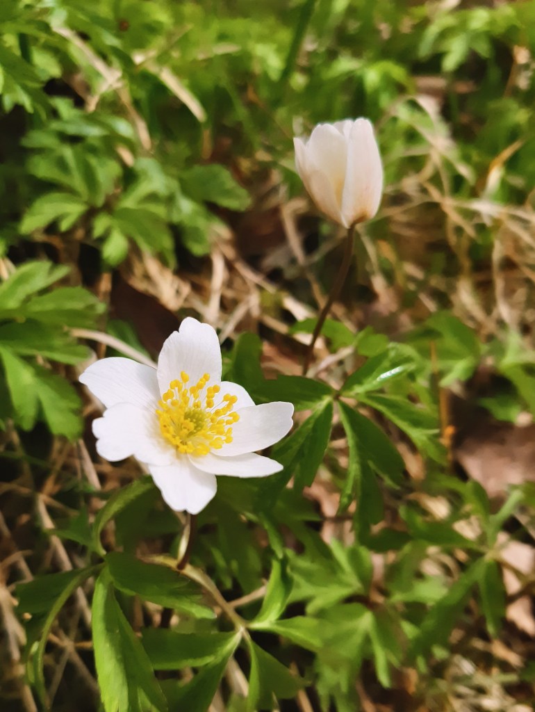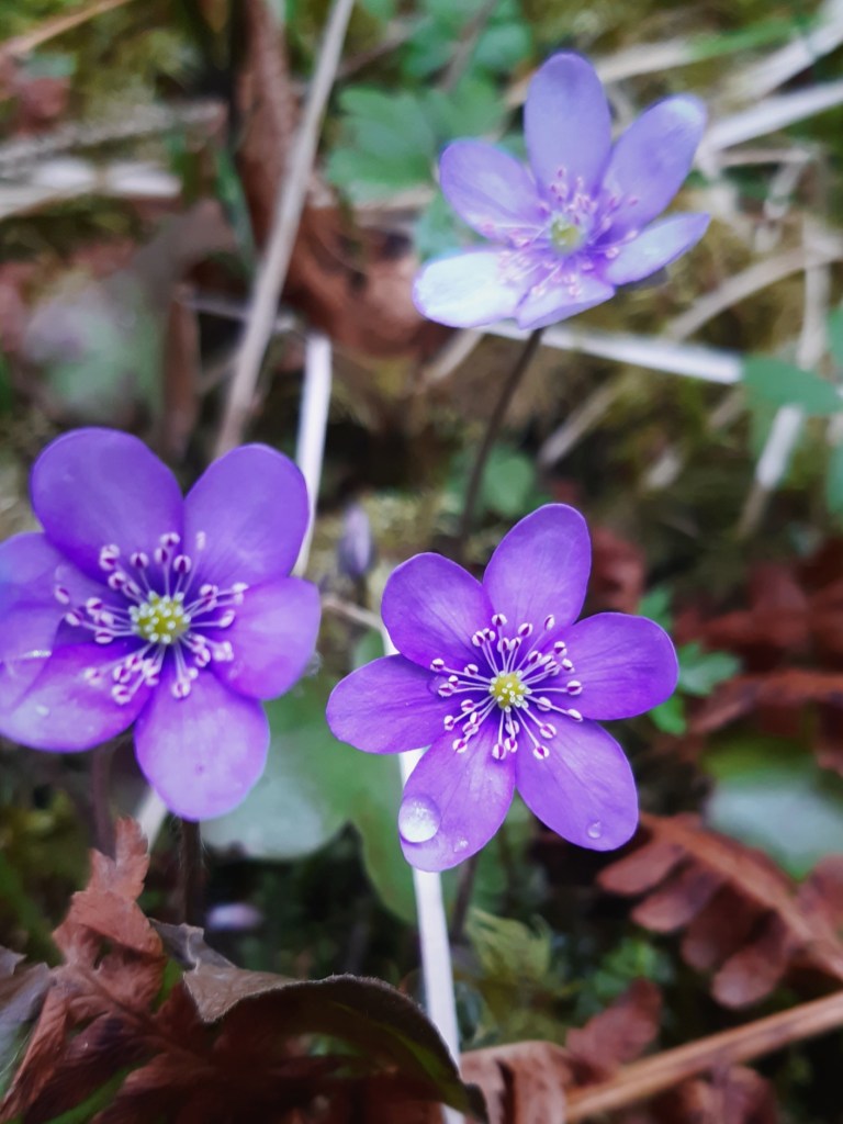 Världen är alldeles för stor och tusenmila, inte bara idag, så jag gör det jag är bra på, jag går stilla på mjuka stigar bland prassliga fjolårslöv och spirande vårblommor. Hittar nya tankar och andas skogens dofter.