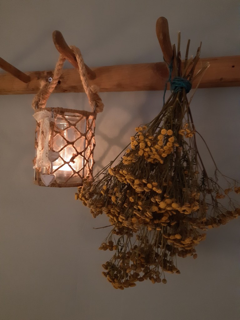 Nu har det slutat snöa, molnen har dragit förbi och solnedgångens strålar skapar mjuka skuggspel i mitt rum. Det är dags för en mugg té innan mörkret faller. En perfekt kväll att drömma drömmar om barfotadans i min doftande trädgård.