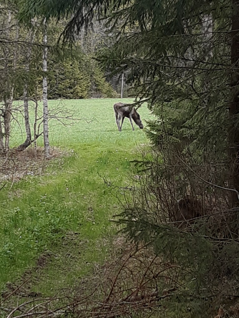 Jag satt stilla idag. Betraktade en älg som åt frukost på ett gärde. Lyssnade på tystnaden och lät vårkylan bita mig i kinderna.