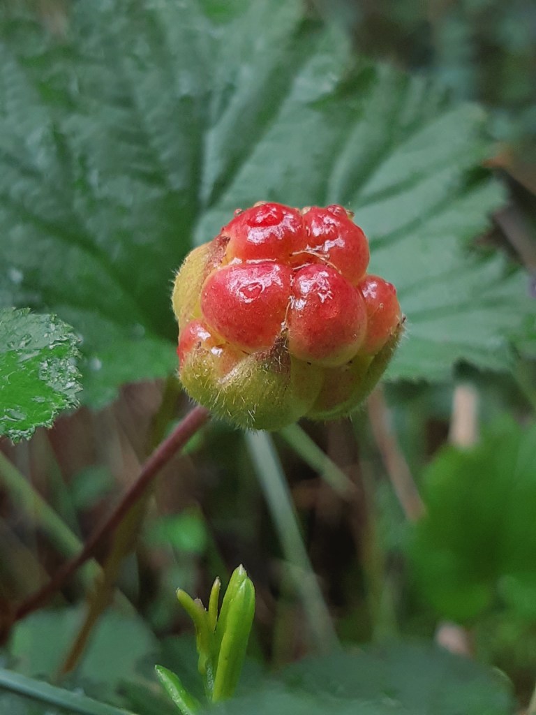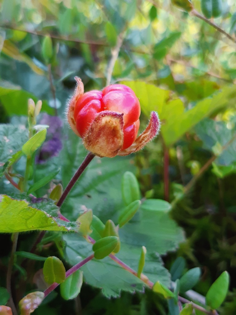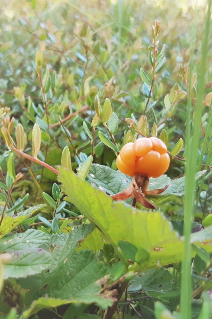 Nu satt jag glatt på huk i en bubblande, sugande och plaskande gungfly och log. De är inte många, inte alls, de räcker inte ens till en väldigt liten burk med sylt, men de var så vackra och näpna där i allt som blev mig så varmt om hjärtat. Som små pärlor i allt det gröna, vackrare än alla skatter på jorden.