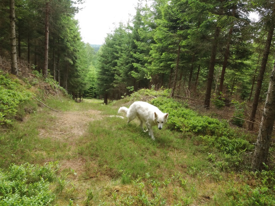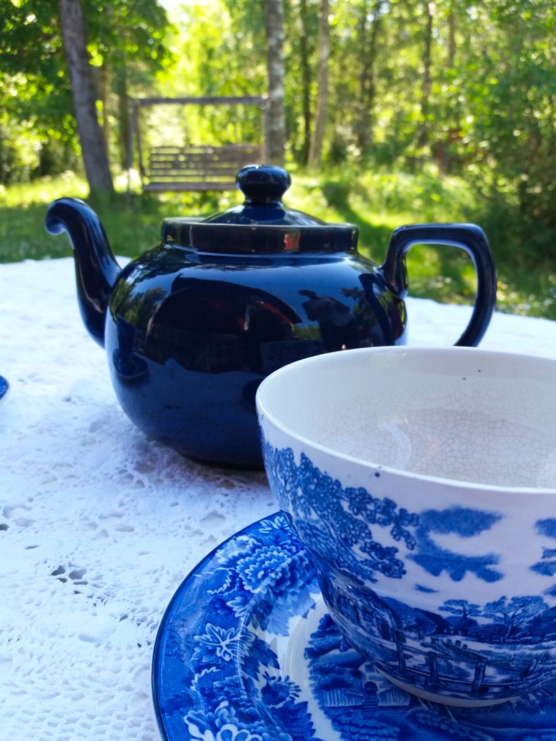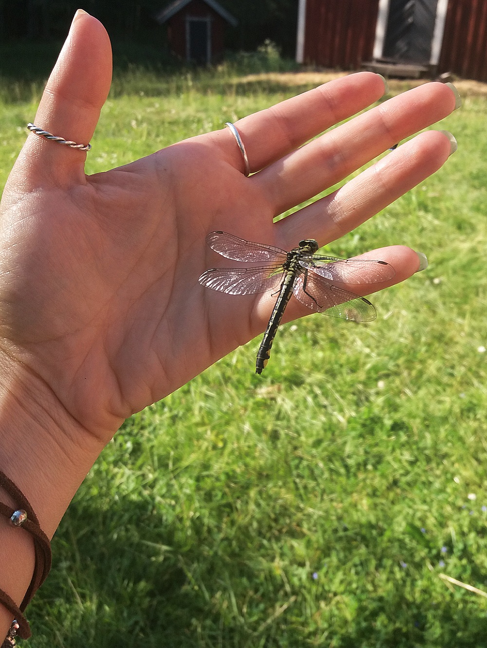 När den galna värmeböljan plötsligt slog om och blev till en vanlig svensk sommar med temperaturer runt tjugo grader, duggregn och senare ett barmhärtigt skiftande molntäcke satte jag på mig skorna och gick ut. Det kändes märkligt att ha skor för en gångs skull för jag bytte ju direkt från vinterkängor till sandaler i år. Men rytmen i stegen fyllde mig med glädje. Jag traskade på längs med en grusväg som jag känner till väl, men istället för att slå in på den vanliga stigen som leder in djupare i skogen fortsatte jag rakt fram. Där har jag aldrig gått förut och jag ville så gärna gå utan mål en stund medan det skira floret av regndroppar lade pärlor i mitt hår och svalkande min kropp.
