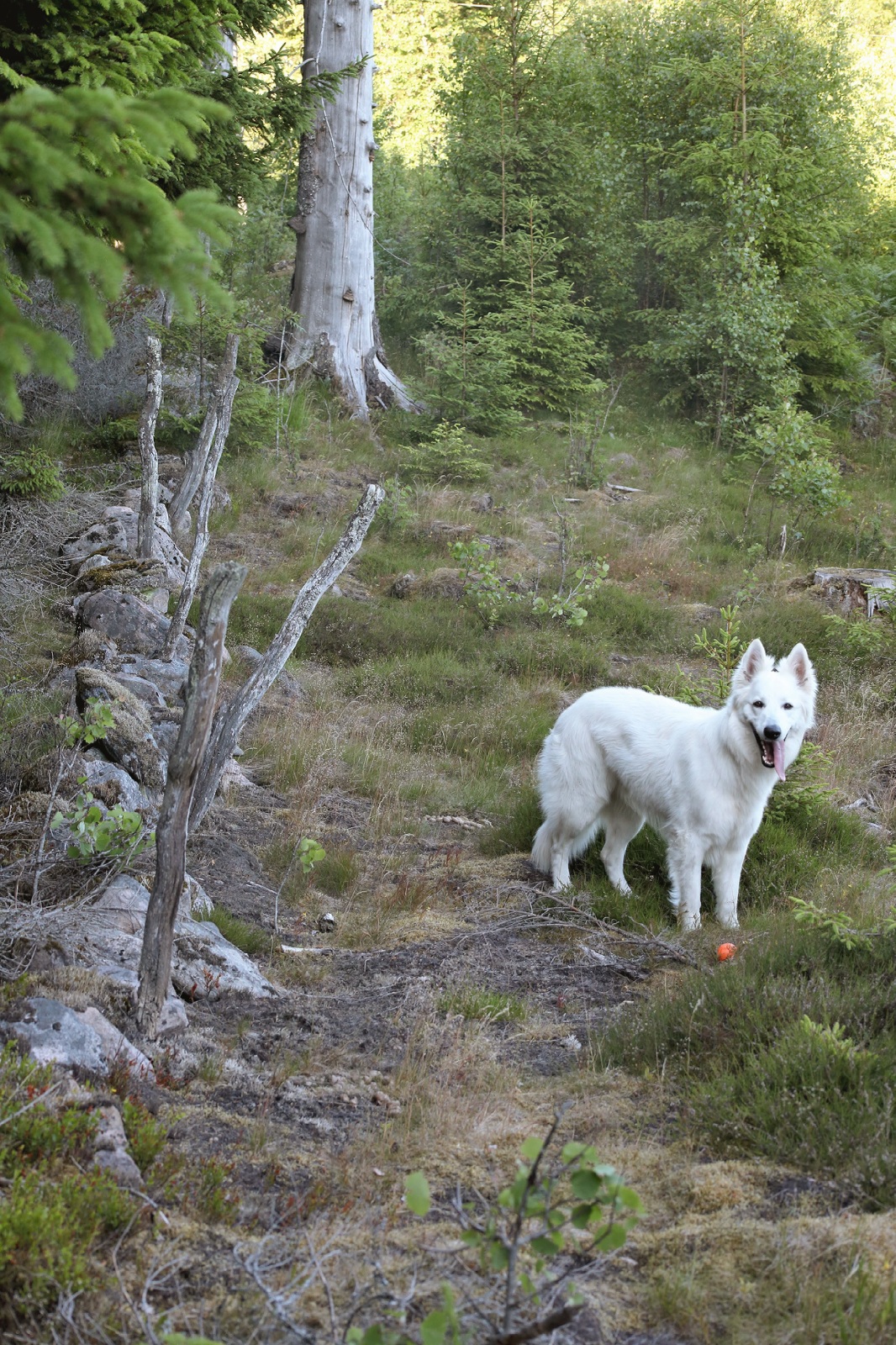 Vi gick bara en mil idag, jag och Vidar, men vi slog in på lite andra stigar och stannade lite oftare eftersom det inte regnade och jag tog lite fler bilder. Tittade på fler blommor och lät Vidar leka i vattendragen vi passerade.