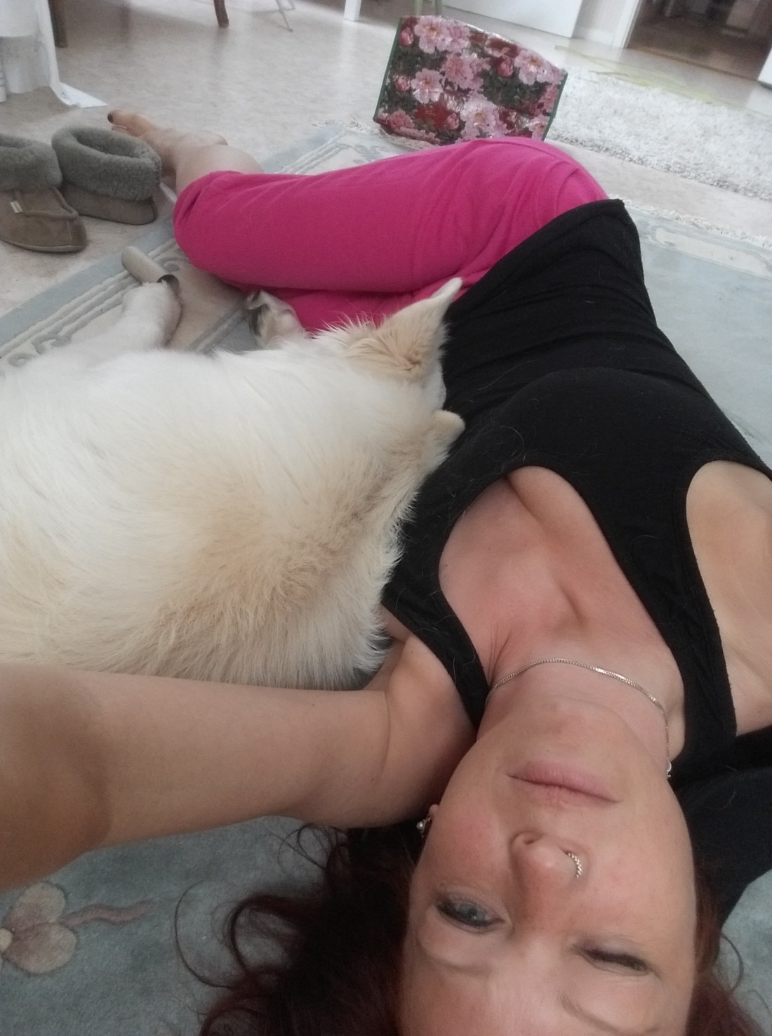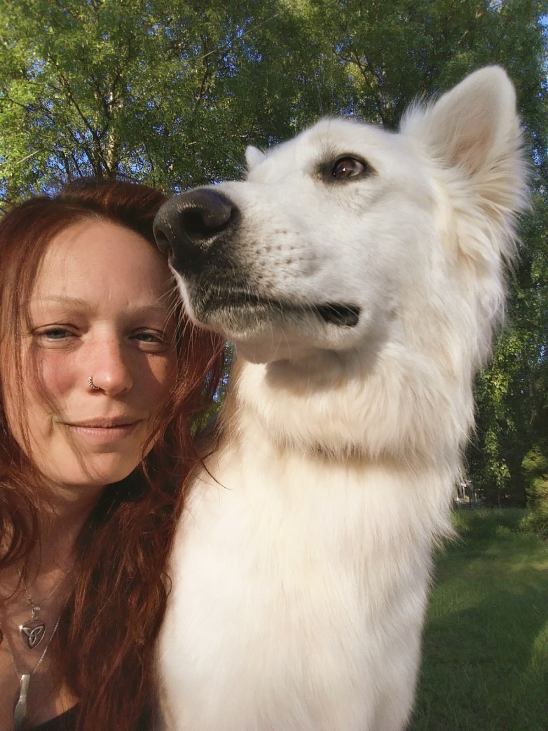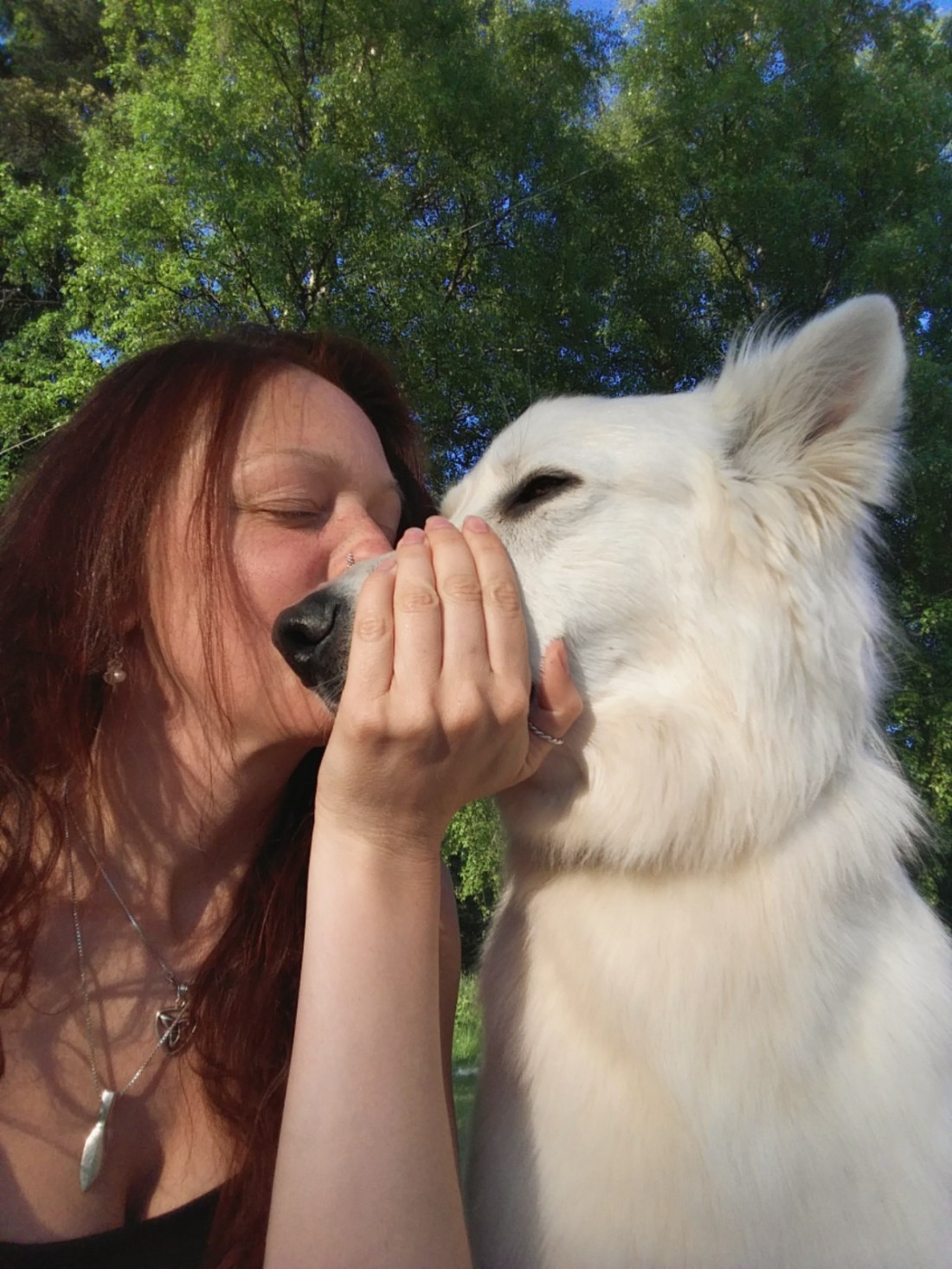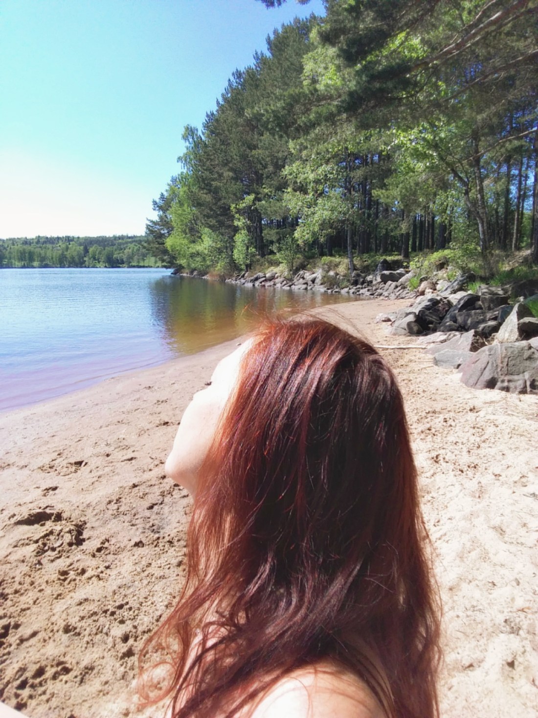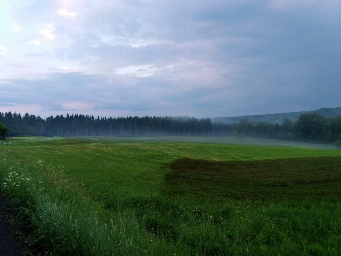 Det var fuktigt länge i gräset idag. Allting blev lite grönare och lite mjukare och ännu lite varmare. Fukten håller om och bäddar in. Jag gillar det, men det blir också begränsande. Ska man rida så får man göra det tidiga, tidiga mornar eller sena kvällar och det är ungefär detsamma som med hunden. Om man inte stoppar ner honom i badet förstås. Det gjorde jag idag. Jag stoppade ner mig själv i badet också och dök ner under ytan och sträckte ut hela mig så långt jag kunde. Fast där gick gränsen tyckte Vidar och förvandlades plötsligt från att vara jätterädd för att simma till räddningspatrull och gav sig inte förrän jag vände in med honom mot land. Så nu har jag nya rivmärken efter hans klor. Jag ser ut som att jag varit i slagsmål med honom, fast han mest bara vill vara nära. Gamla och nya blåmärken är lite överallt på min kropp vid det här laget.