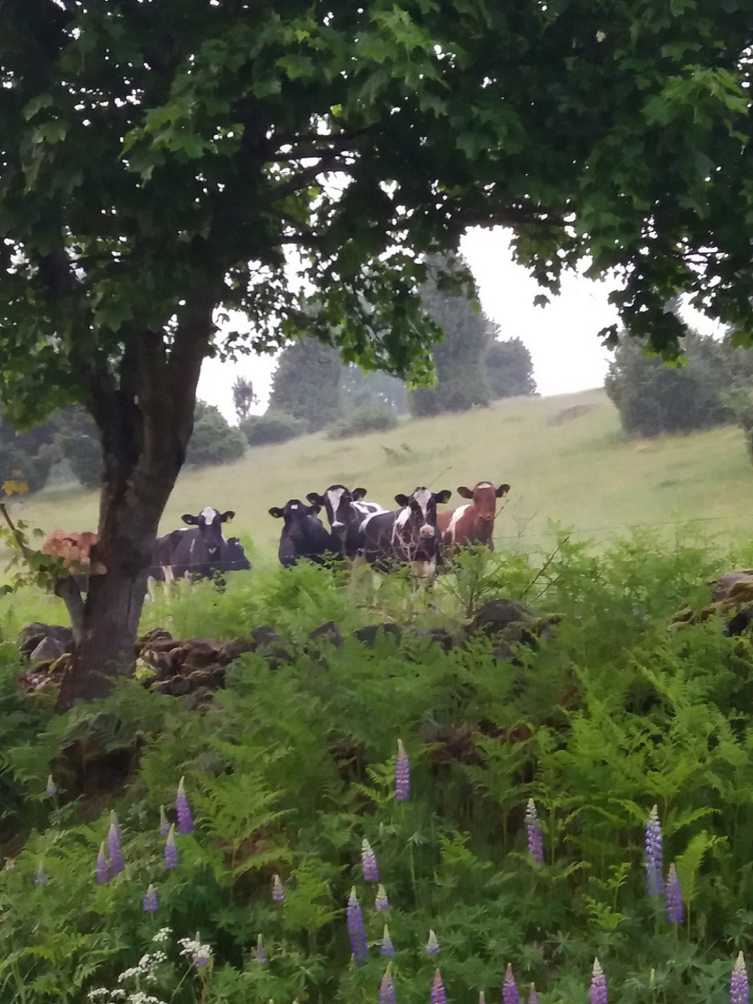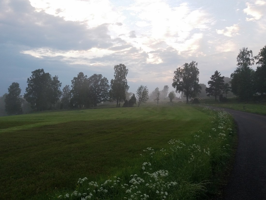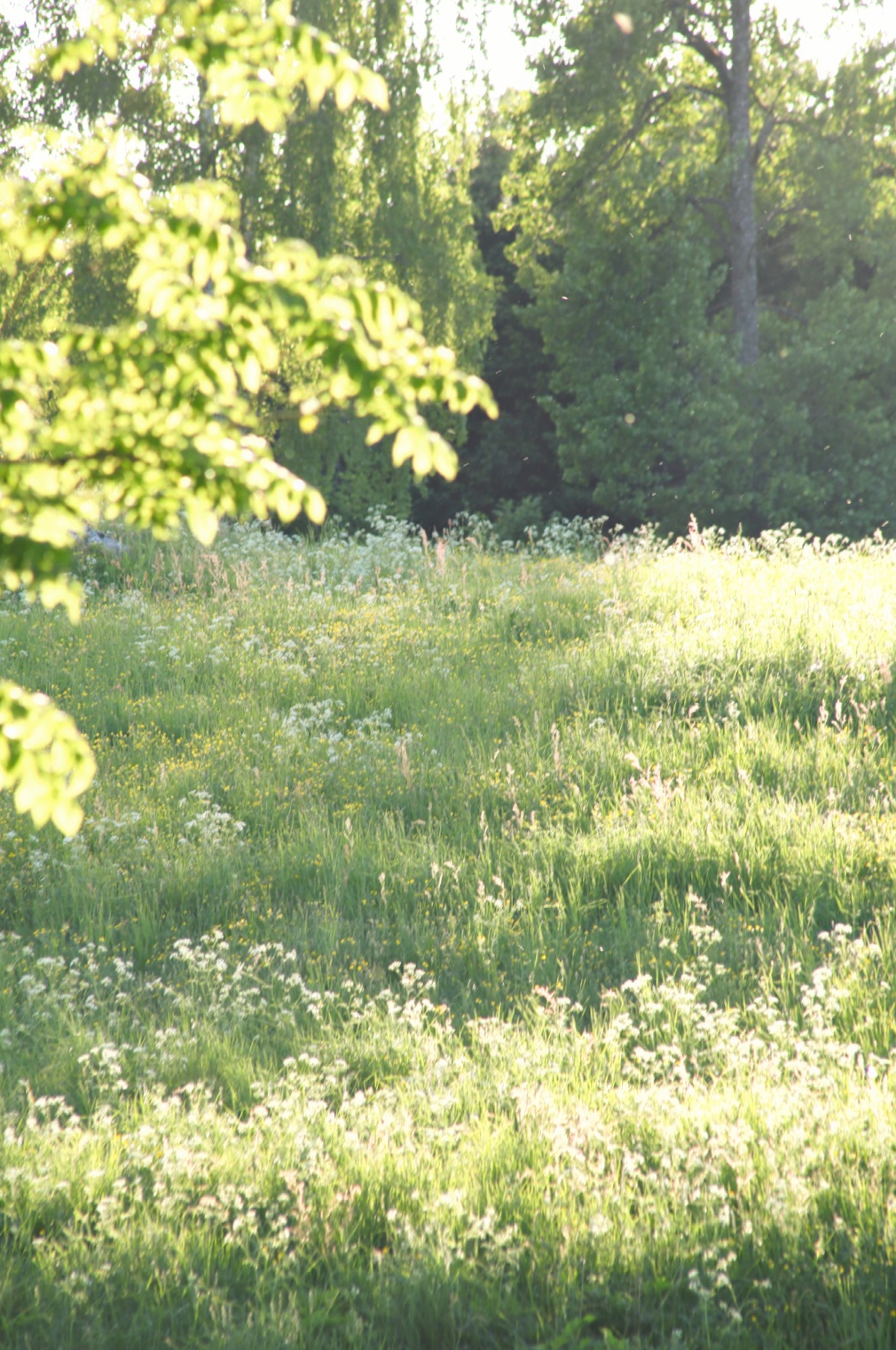 Undrar vad de tänker på egentligen? Gräs, knott, fullmånen? Om hur oändligt lång sommaren känns eller tiden innan grönbetet? Vem vet… Jag är nöjd så länge de är där de är och jag får vara på en annan gräsmatta och blåsa skorrande pipljud med platta grässtrån mellan tummarna och försöka minnas hur man gjorde trumpetljud med maskrosstjälkarna som när man var liten. Allt medan skuggorna vandra och ljuset leker bland träden.