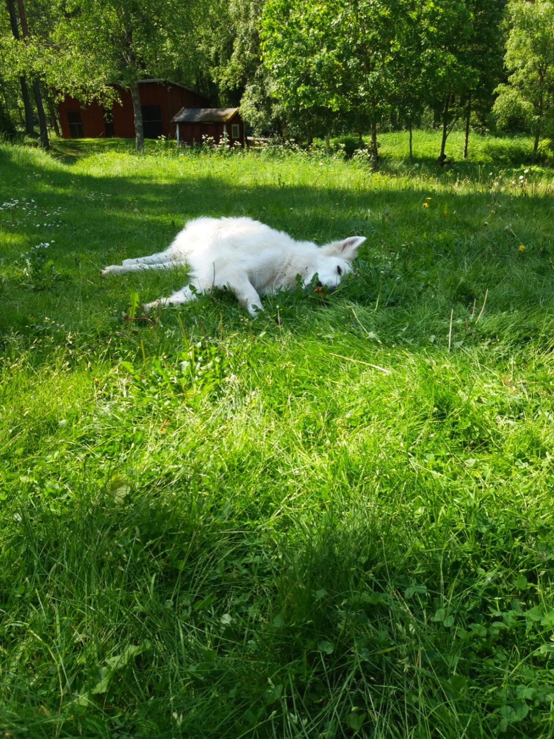 Att torka långsamt i skuggan efter badet är hans melodi. Ligga och tugga på bollen eller mumsa på maskrosor, oavsett om de blommar eller bara har en boll av luddiga frön. Det spelar inte så stor roll.