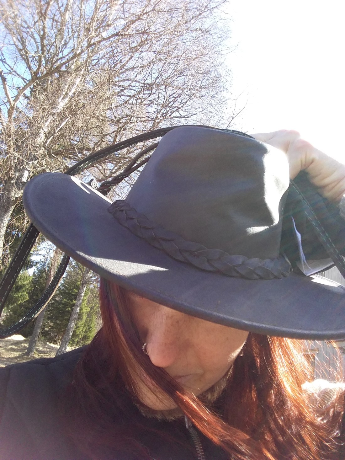 Det fick jag inte. Däremot sidovind och så pass mycket regn att jag fick blunda med ena ögat där vinden får som mest fart. Jag kanske får börja springa med hatten på!