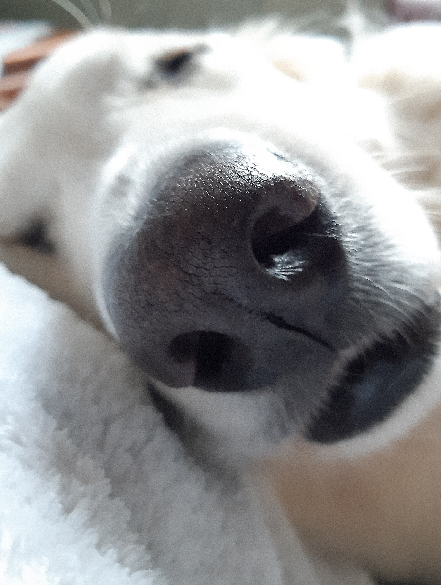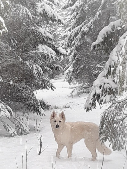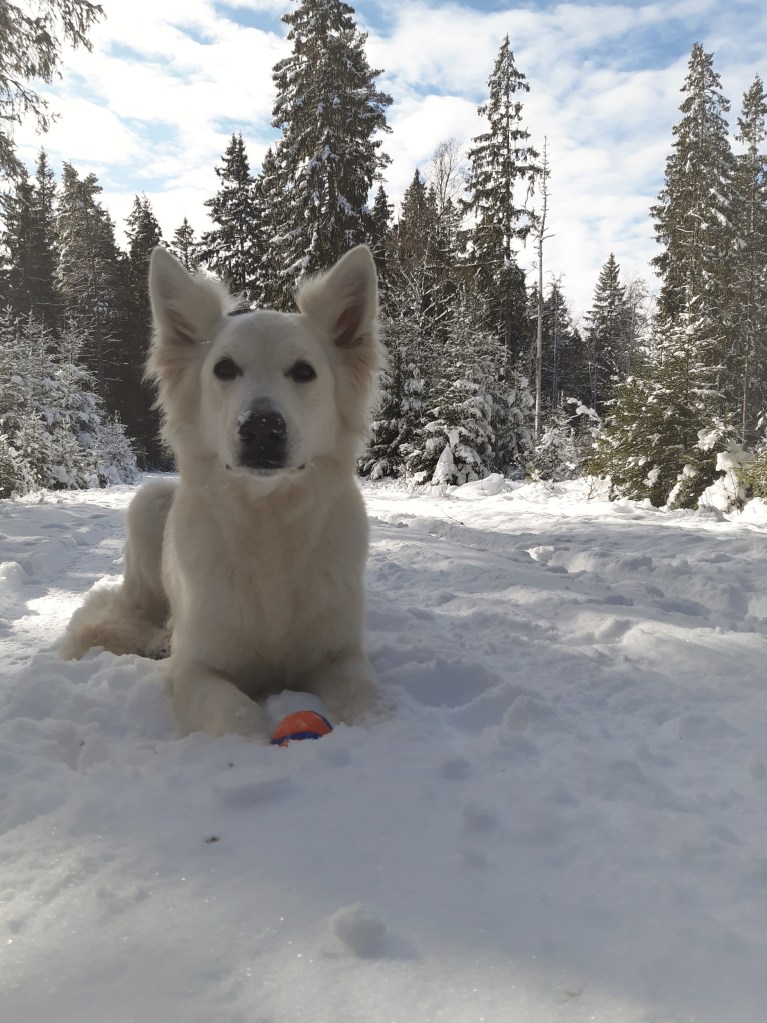 Vidar däremot, han älskar att äta alldeles för mycket snö så idag räckte det inte med att sätta på honom täcke. Han fick gå in och ligga under elvärmefilten i en halvtimme innan han slutade skallra tänder. Jag måste erkänna att jag blev litegrann orolig för så mycket brukar han inte frysa. Men nu har jag lärt mig det, ska jag skotta med skyffeln så får han stanna inne.