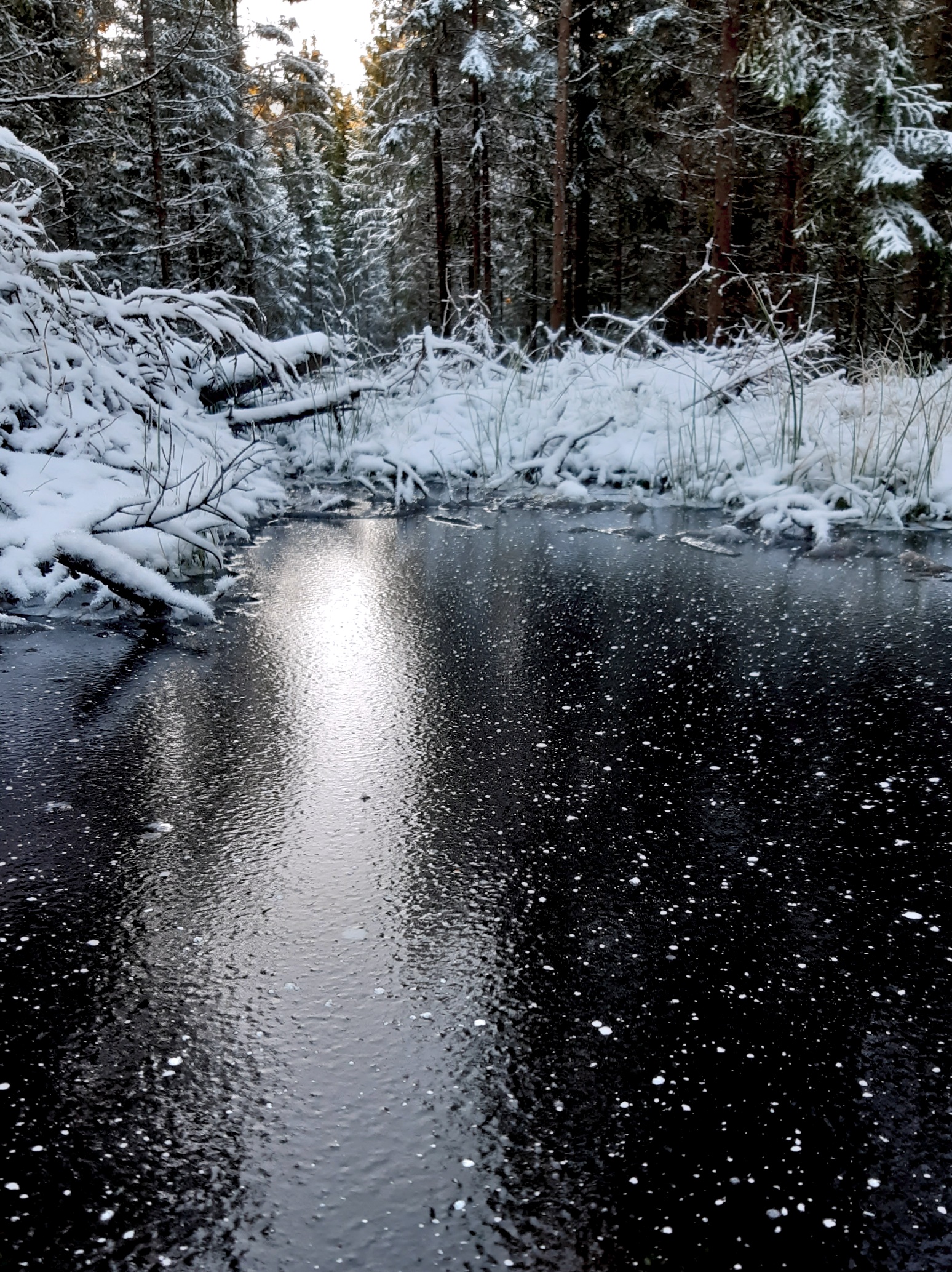 Natten bjöd på vinterns första tio minusgrader och egentligen skulle jag ha passat på att välkomna den spirande nymånen ute i den gnistrande snön, men lite naivt trodde jag nog att den skulle vara lika gnistrande även denna kvällen. Så blev det inte, men i morgon ska det komma ny snö så förhoppningsvis stannar vintern en stund till.